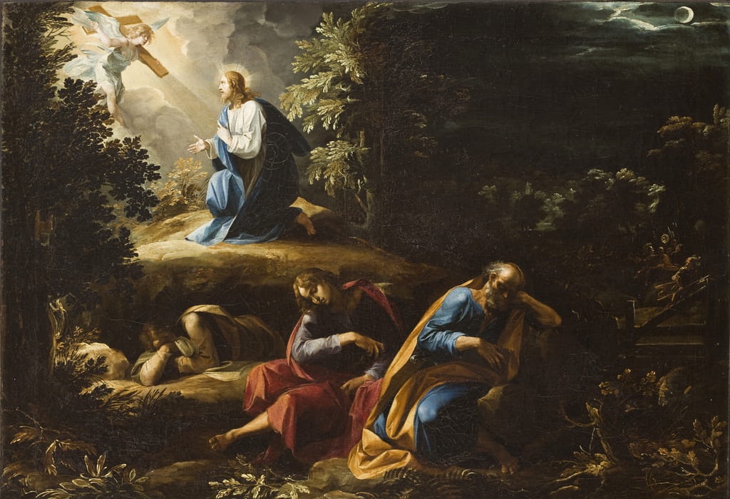 Även dagens epistelläsning ur Hebreerbrevet skildrar hur Kristus bad sin Fader om hjälp inför och under sitt lidande: ”Under sitt liv på jorden uppsände han med höga rop och tårar enträgna böner till den som kunde rädda honom från döden, och han blev bönhörd därför att han böjde sig under Guds vilja.” (Heb 5:7). Det som åsyftas här är närmare bestämt Jesu bön i Getsemane: ”Fader, låt denna bägare gå förbi mig, om det är möjligt. Men inte som jag vill, utan som du vill.” (Matt 26:39). I den andra delen av Jesus från Nasaret kommenterar påven Benedictus XVI texten ur Hebreerbrevet: ”Texten säger att Jesus bönföll Honom som kunde rädda honom från döden och att ’han blev bönhörd därför att han böjde sig under Guds vilja’. Men blev han verkligen bönhörd? Han dog ju trots allt på Korset! (…) Det är möjligt att urskilja flera olika dimensioner av denna bönhörelse. En möjlig översättning av texten skulle vara: ”Han blev bönhörd och befriad från sin ängslan.” (…) Men texten har på ett uppenbart sätt en betydelse som går ännu längre: Fadern drog honom ut ur dödens natt, och i uppståndelsen har han definitivt och för alltid räddat honom från döden: Jesus dör aldrig mer. Texten har dock sannolikt ytterligare en betydelse. Uppståndelsen utgör inte bara Jesu personliga räddning från döden. Han har nämligen inte sjunkit ner i denna död endast för sig själv. Det var en död ’för de andra’, det var när allt kommer omkring ett överskridande av döden som sådan.”