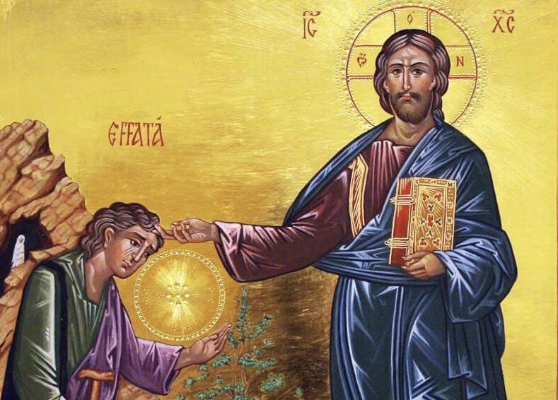 I dagens evangelium hörde vi ett av de fåtal ord på Jesu modersmål arameiska som har bevarats i den grekiska grundtexten av evangelierna: Effata, öppna dig! Detta ord används vid barndop. Som den sista av de kompletterande riterna efter själva dopet rör dopförrättaren vid barnets öron och mun och säger: ”Effata! Öppna dig! Herren Jesus Kristus lät de döva höra och de stumma tala. Må han låta dig höra hans ord och med din mun bekänna tron, Gud Fadern till pris och ära.” Innebörden är alltså att den nydöpte, som den dövstumme i dagens evangelium, ska kunna öppna sig för att både höra det som Gud vill säga till honom, samt föra vidare trons glada budskap till andra. Men även för en döpt så kan det hända att man på olika sätt stänger sina öron, sin mun och sitt hjärta för Gud och det glada budskapet.